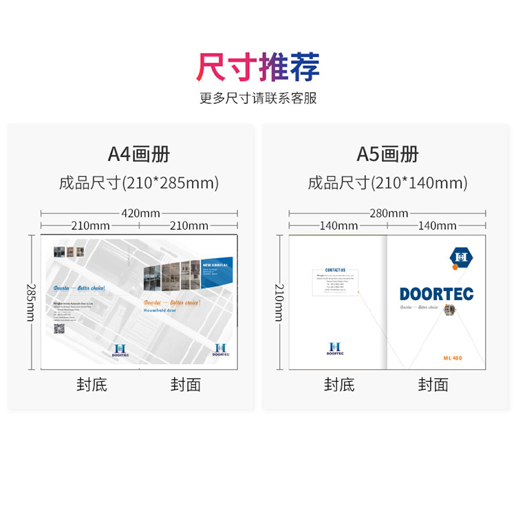 常規(guī)尺寸:A4畫冊(210*285mm)、A5畫冊(210*140mm)